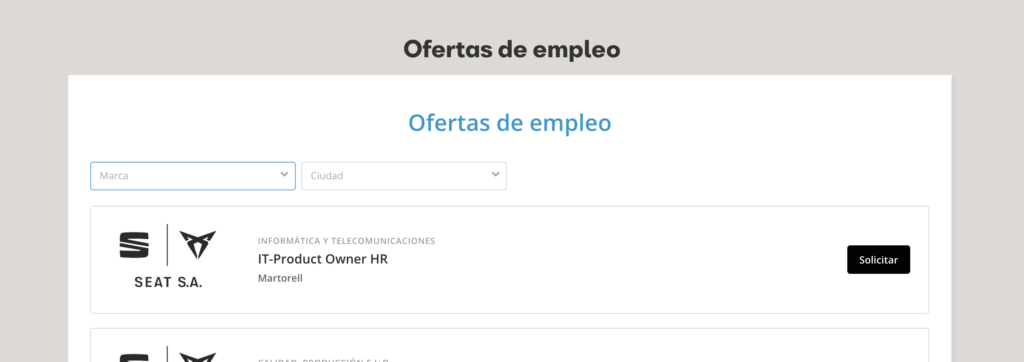 Dentro de la sección de empleo, vas a encontrar una lista de ofertas de empleo disponibles en esta empresa.