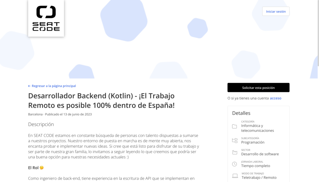 En la página, dentro de la oferta de empleo encontrarás un botón que pone “Solicitar esta posición”.